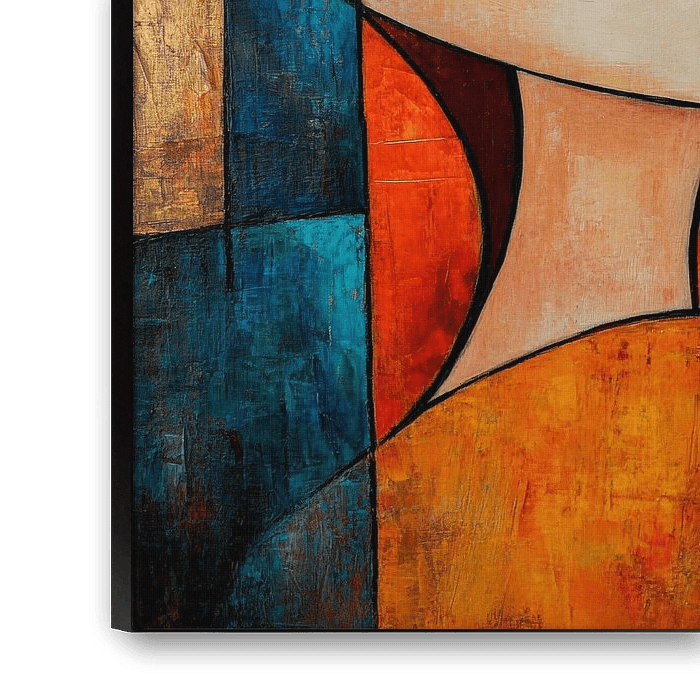 The harmonious colour tones in warm shades of red and gold merge into a stylised depiction of a contemplative woman. Her closed eyes and the soft lines lend the picture a calm, meditative aura. Ideal for the bedroom, it conveys an atmosphere of relaxation and intimacy.
