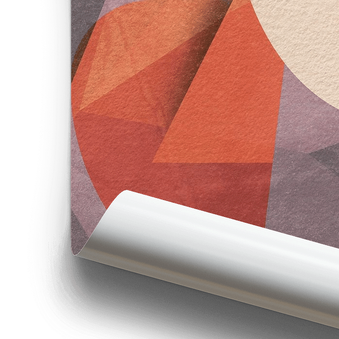 This abstract digital portrait portrays the essence of a woman or girl through minimalist geometric shapes. Composed in muted tones like soft grey, warm pink, rust, and earthy brown, the artwork balances emotional strength with simplicity and elegance.