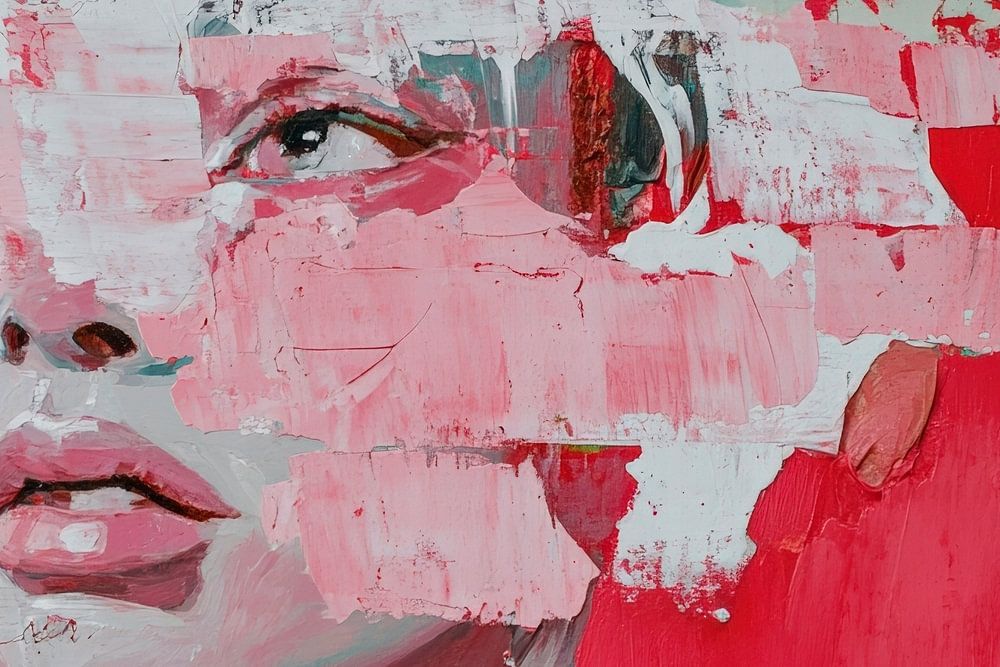 A fascinating interplay of colours and emotions unfolds in this abstract depiction. The soft shades of pink and the strong red background colour give the picture a dynamic energy that encourages reflection. Ideal for a living room, where it can stimulate conversation and create a creative atmosphere.