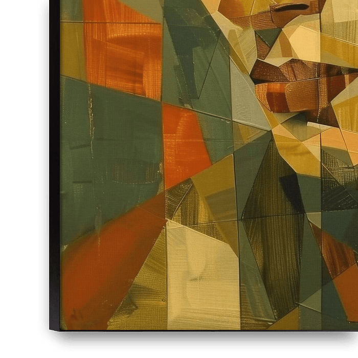 This impressive painting shows an abstract portrait of a woman that captivates with its warm earthy tones and geometric shapes. The harmonious combination of green, brown and orange tones gives the painting a calming yet intriguing aura. Ideal for modern living spaces or offices, this artwork offers an elegant and dynamic addition to…