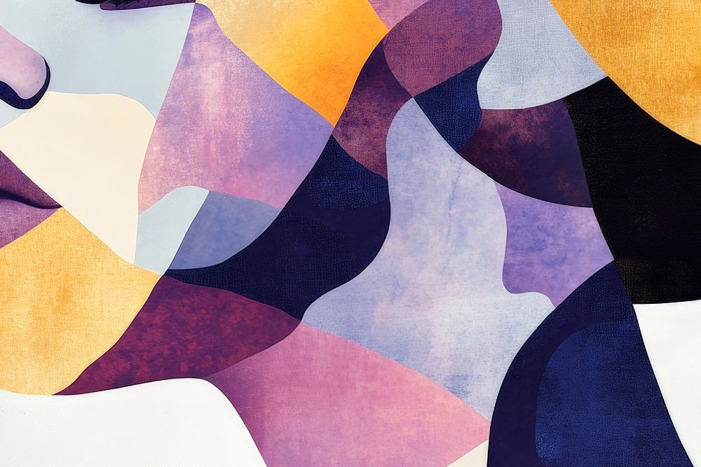 A harmonious interplay of soft colours and geometric shapes casts a spell over the viewer. The dreamy pose and gentle facial expression radiate calm and elegance. This work of art is the perfect addition to a bedroom, where it creates a relaxed atmosphere and invites you to linger.
