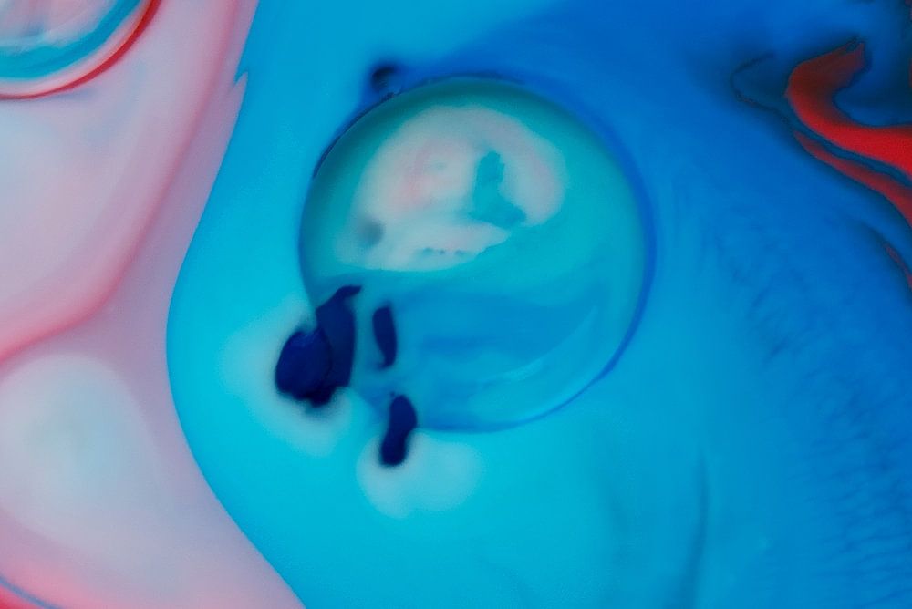 Abstract red and blue by Jeannine Van den Boer