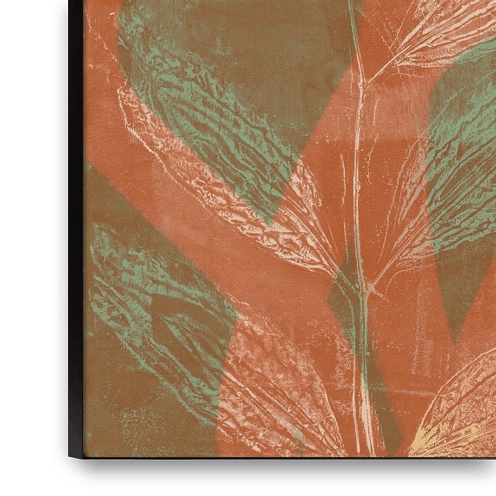 Buy this abstract artwork Abstract retro botanical art in terra and green. Leaves. by Dina Dankers on canvas, ArtFrame, poster and wallpaper, printed on demand in high quality.