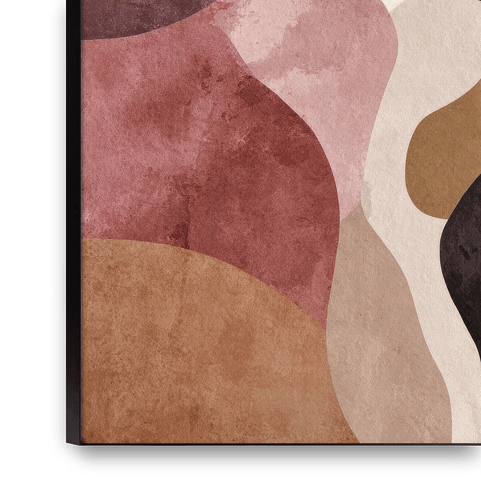 This abstract composition brings together a harmony of organic forms and soft transitions in warm earth tones such as terracotta, beige and deep black. The layered structures and subtle textures are reminiscent of watercolour and create a sense of depth and movement. Rounded and flowing shapes alternate in a harmonious balance, giving…