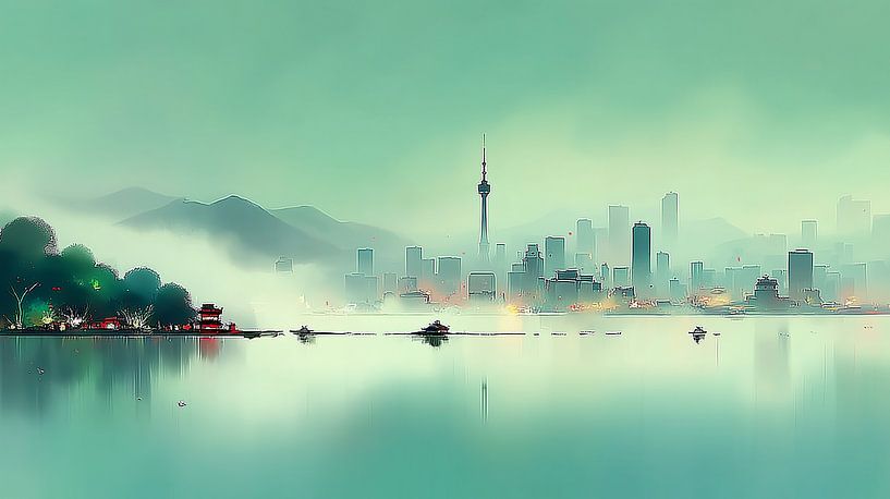 Buy this landscape artwork Abstract skyline big city at sunset by Jan Bechtum on canvas, ArtFrame, poster and wallpaper, printed on demand in high quality.