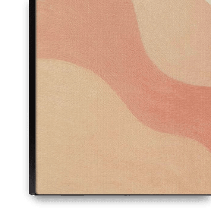 Wavy stripes in peach, coral and mint flow smoothly past each other, forming a calm abstract play. Organic shapes alternate with soft colour gradients, creating a pleasing rhythm. Warm and cool tones provide subtle contrast and a calm, airy atmosphere. The composition remains light thanks to ample cream zones and rounded transitions,…