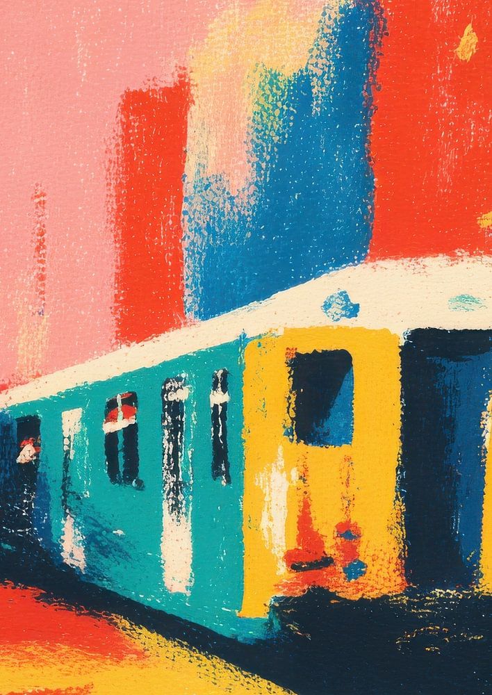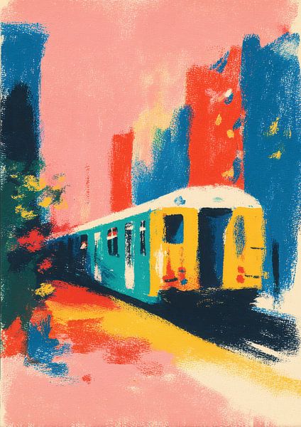 Buy this abstract artwork Abstract train in bold colours by Niklas Maximilian on canvas, ArtFrame, poster and wallpaper, printed on demand in high quality.