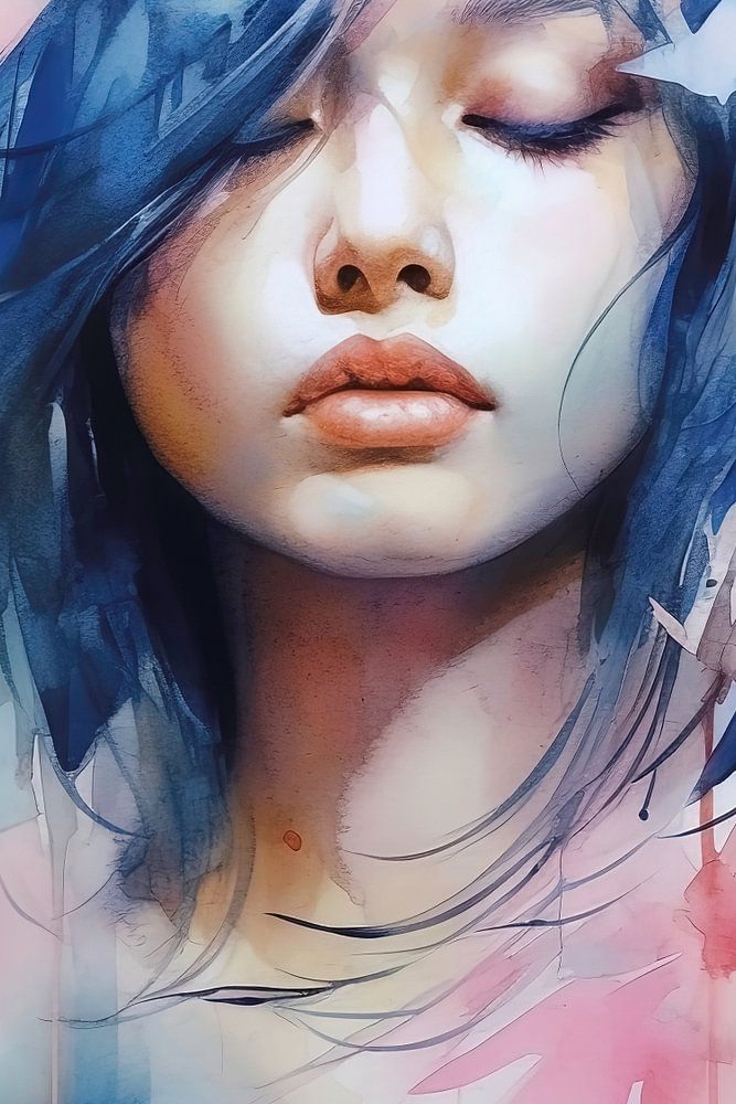 abstract watercolour of a girl/woman. this image was created by artificial intelligence (Ai).