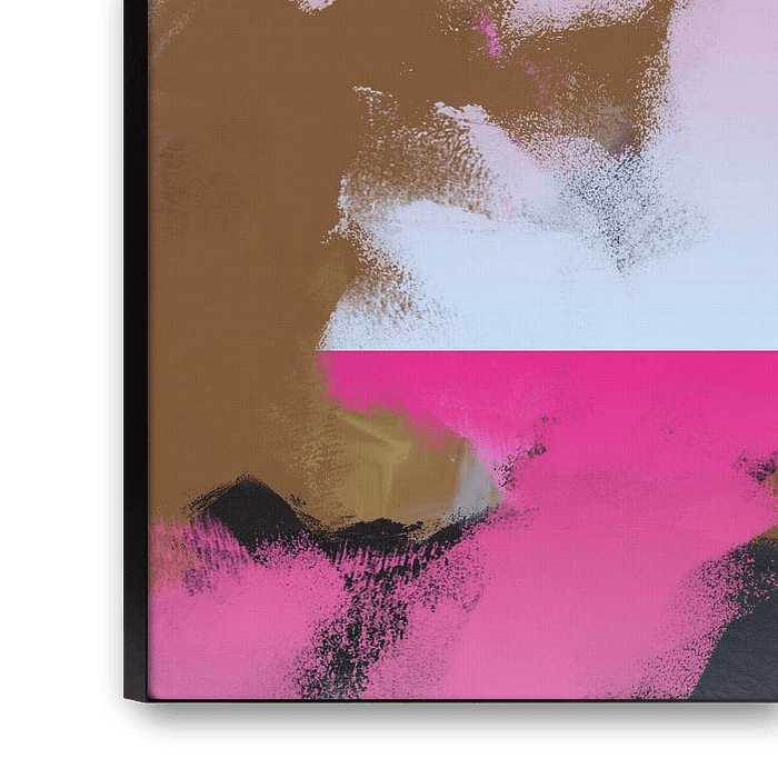 Abstract work in shades of gray, pink and brown. A playful and surprising effect because at the bottom a tight, dark pink surface is present and the top, on the contrary, is playfully arranged in terms of composition.