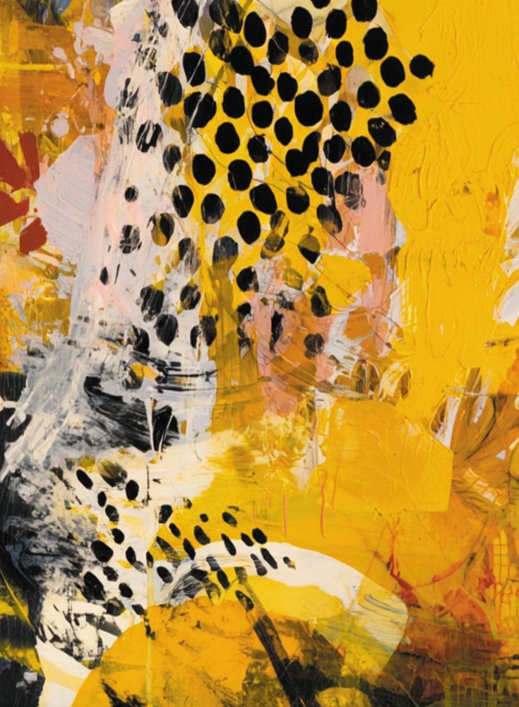 A dance of forms without boundaries. Colours, lines and textures meet freely, detached from the recognisable, yet deeply rooted in this artwork.