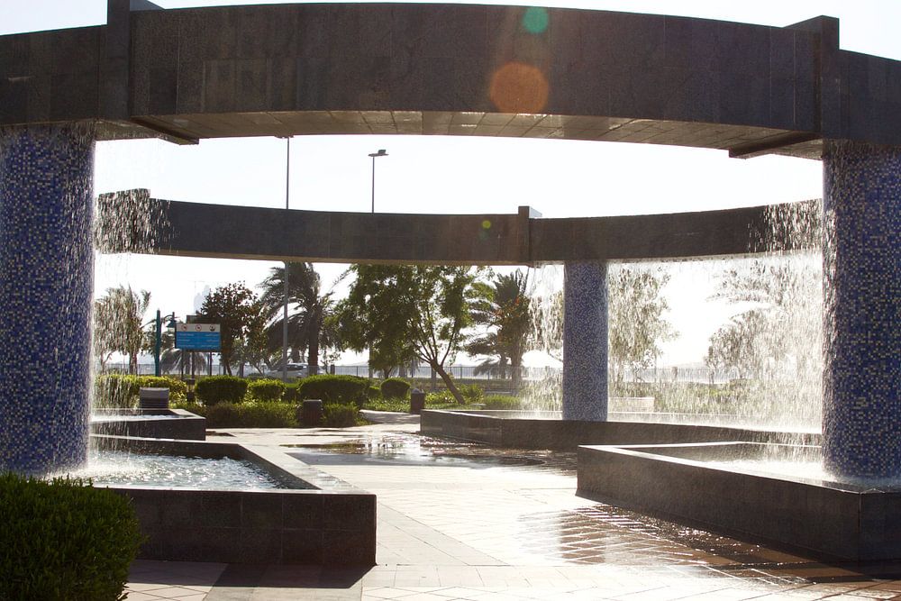 abu dhabi, verenigde arabische emiraten, fontein, fountain, sun, zon, water, zomerdag, summer