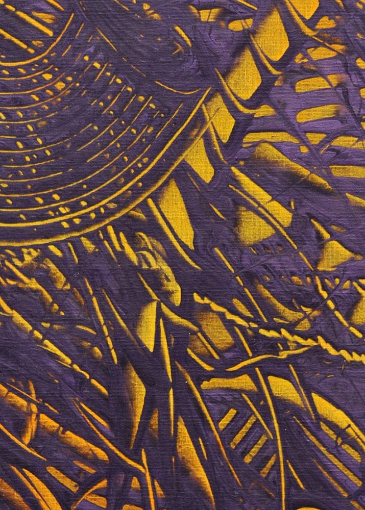 Technically, grattage (literally: scraping) has been applied. To be precise: grattage with a palette knife in the still wet paint. In the process, the top layer is partly removed, revealing the underlying layer. This creates organic (or: biomorphic) forms but also sharp, taut lines. Fine transitions and nuances are created in the colour/colours.