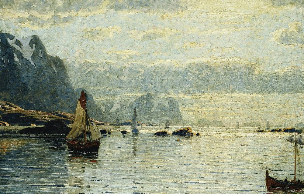 About "Adelsteen Normann~A Fjord Scene with Sailing Vessels"