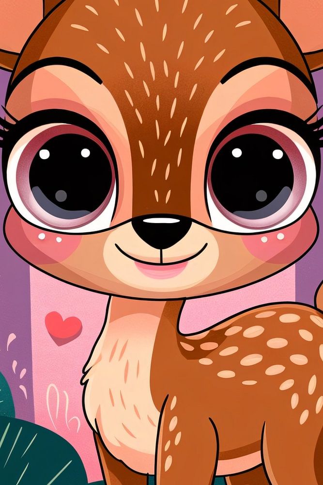 This charming design shows an adorable deer calf in a playful and colourful setting. With large, expressive eyes and an adorable look, this little deer is a real eye-catcher. The background features colourful patterns with hearts, stars and vibrant shapes, creating a cheerful and childlike atmosphere. This artwork is perfect for spaces such as a children's room or a hobby room, where a sense of playfulness and warmth is desired. The design combines digital art with a modern and eclectic touch, making it versatile in different decoration styles. The warm colours and soft lines create an inviting atmosphere perfect for lovers of animals and cheerful illustrations.