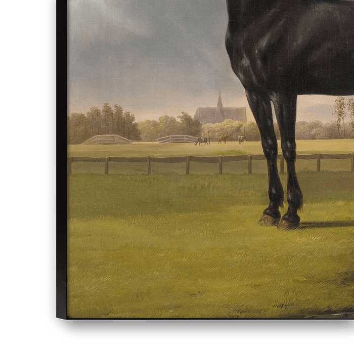Upper-class Dutchmen aspired to the life of an English gentleman. The fabulously rich banker and art collector Adriaan van der Hoop owned racehorses and, like members of the English aristocracy, had portraits made of his prizewinners. The picture’s style is also English: the horse is painted in profile, in cool bright tones, set in a sober composition. The horse stands in a meadow in Van der Hoop’s estate near Haarlem.
