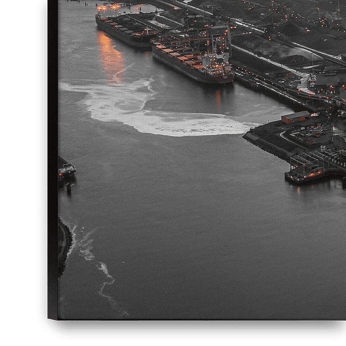 Buy the photo Aerial panorama of Tata Steel IJmuiden along the North Sea coast by Jeroen Kleiberg on canvas, ArtFrame, poster and wallpaper, printed on demand in high quality.