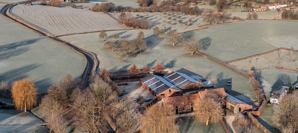 Aerial panorama of the South Limburg landscape near Epen on a cold winter morning