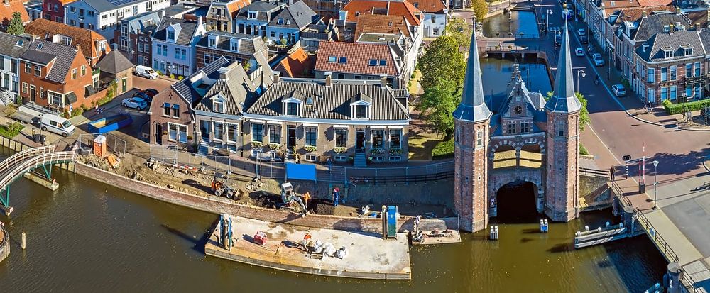 Aerial panorama of the historic town of Sneek with the Waterpoort in Friesland Netherlands