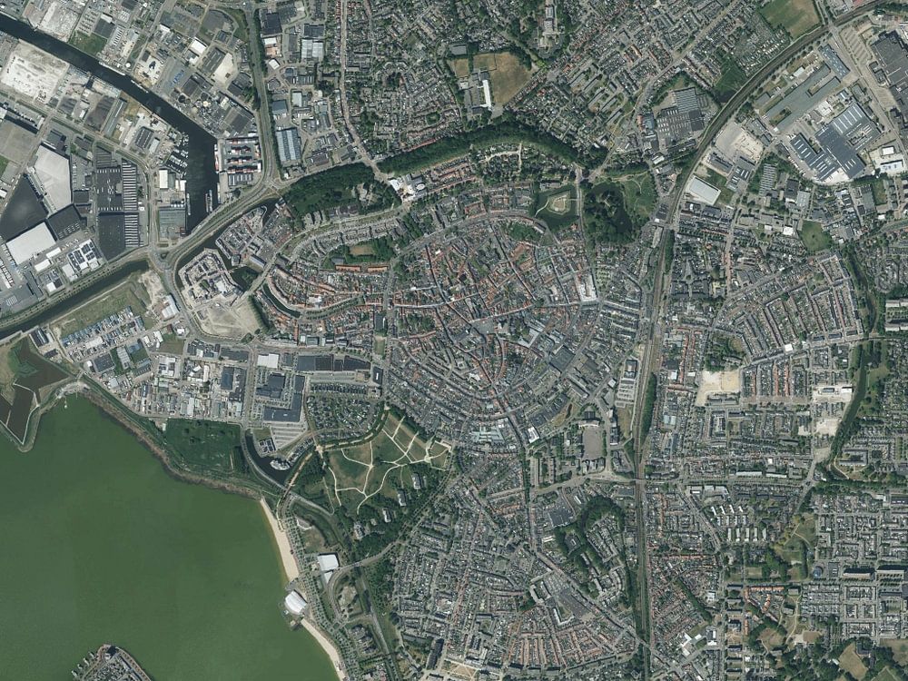 This aerial photo of Bergen op Zoom was obtained by unleashing various GIS techniques on open data. The Aerial Photo has been edited with various filters so that some more details stand out.