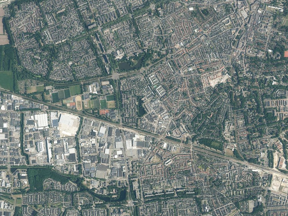 This aerial photo of Ede was obtained by unleashing various GIS techniques on open data. The Aerial Photo has been edited with various filters so that some more details stand out.