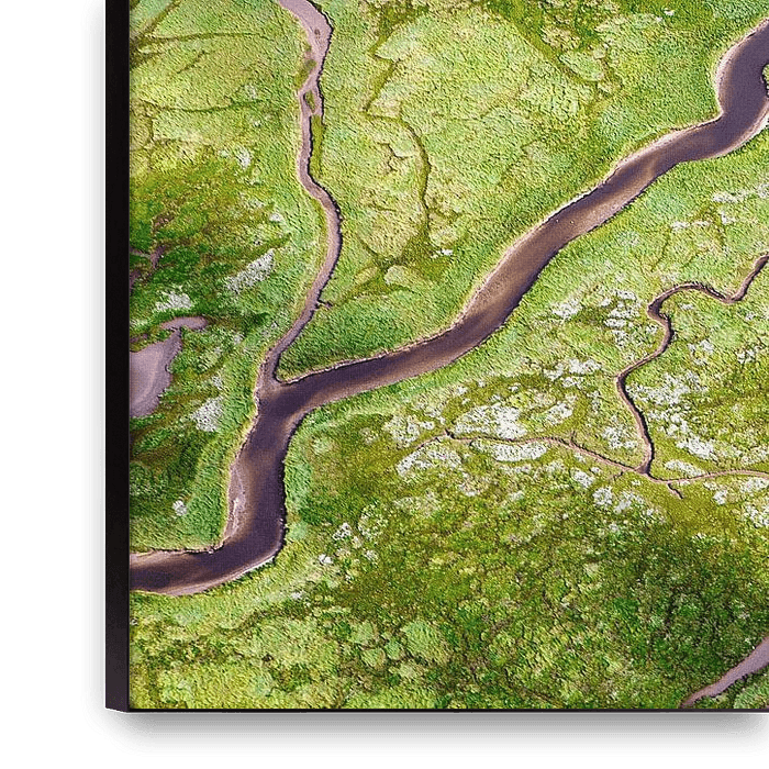 Buy this landscape artwork Aerial photo of salt marsh on Schiermonnikoog by Frans Lemmens on canvas, ArtFrame, poster and wallpaper, printed on demand in high quality.
