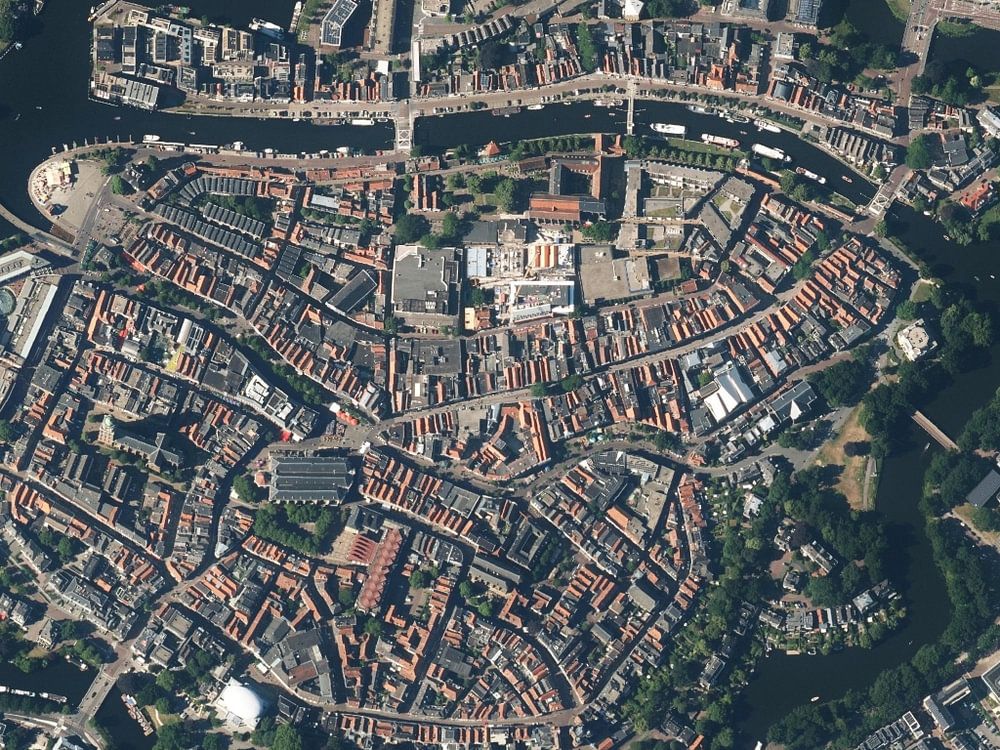 This aerial photo of Zwolle city centre was obtained by unleashing various GIS techniques on open data. The aerial photo has been processed with various filters so that some more details stand out. It is possible that artefacts in the form of bands can still be seen due to time differences during flying in.