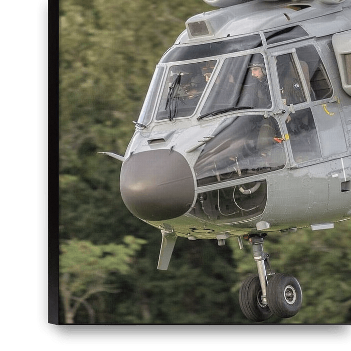 Buy the photo Aerospatiale AS-332L1 Super Puma of the French Air Force has just taken off. by Jaap van den Berg on canvas, ArtFrame, poster and wallpaper, printed on demand in high quality.