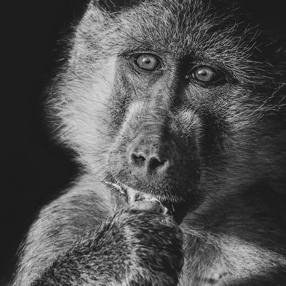 Buy the photo Africa Black: Yellow Baboon by Jack Soffers on canvas, ArtFrame, poster and wallpaper, printed on demand in high quality.