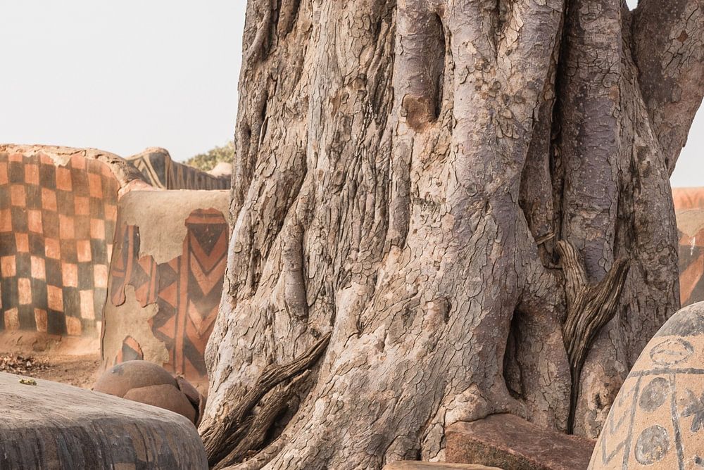 In West Africa, you regularly come across traditional huts. Round mud huts with a thatched roof. In some countries, they make the huts smooth like stucco. Sometimes they colour the plastered walls. Here in southern Burkina Faso, in Tiébélé department, the traditional huts and enclosures are not only painted in ochre or brown, but the walls also have symbols. I find the architecture in this part of West Africa very interesting. You don't really find the shapes and colours of the richly decorated houses anywhere else in the world. If you ever go to Burkina Faso, a visit to Tiébélé is definitely worthwhile.