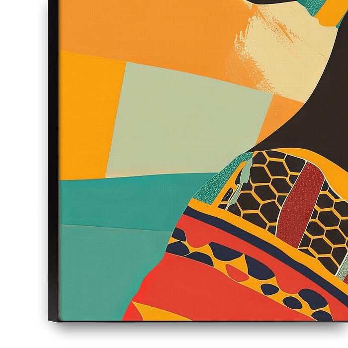 In this abstract art, the profile of an African woman is depicted in bold, vibrant colours and geometric shapes. The skilfully tied headdress and elegant accessories give the silhouette a special depth and expressiveness. The combination of traditional African aesthetics and modern, abstract elements creates a harmonious balance between…