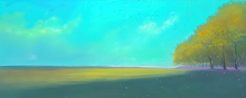 Buy this landscape artwork Air Trees | Turquoise Sky Yellow Trees by Art Whims on canvas, ArtFrame, poster and wallpaper, printed on demand in high quality.