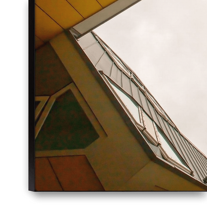 View of the sky between the tops of the facades of the cube houses in Rotterdam