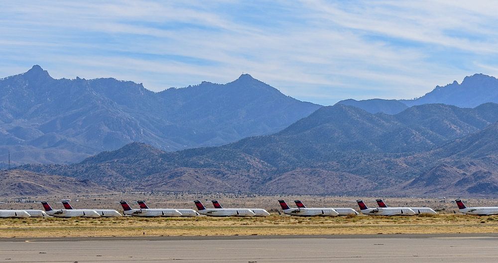 A number of locations in Arizona store used aircraft until they are returned to service or scrapped. This photo was taken at Kingman Airport on 15 November 2016. The aircraft in the distance are Bombardier CRJ-200 of Delta Airlines.