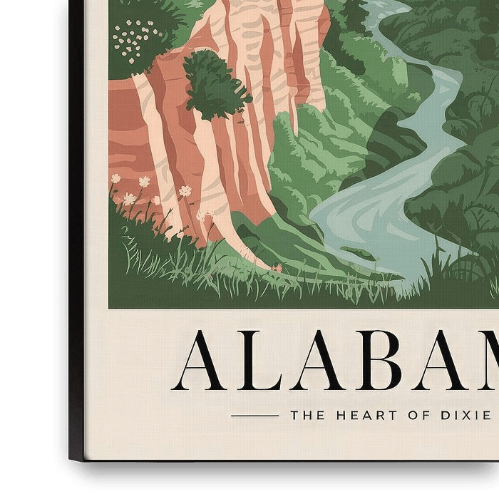 Buy this landscape artwork Alabama Vintage Travel Poster by Poster Art Shop on canvas, ArtFrame, poster and wallpaper, printed on demand in high quality.