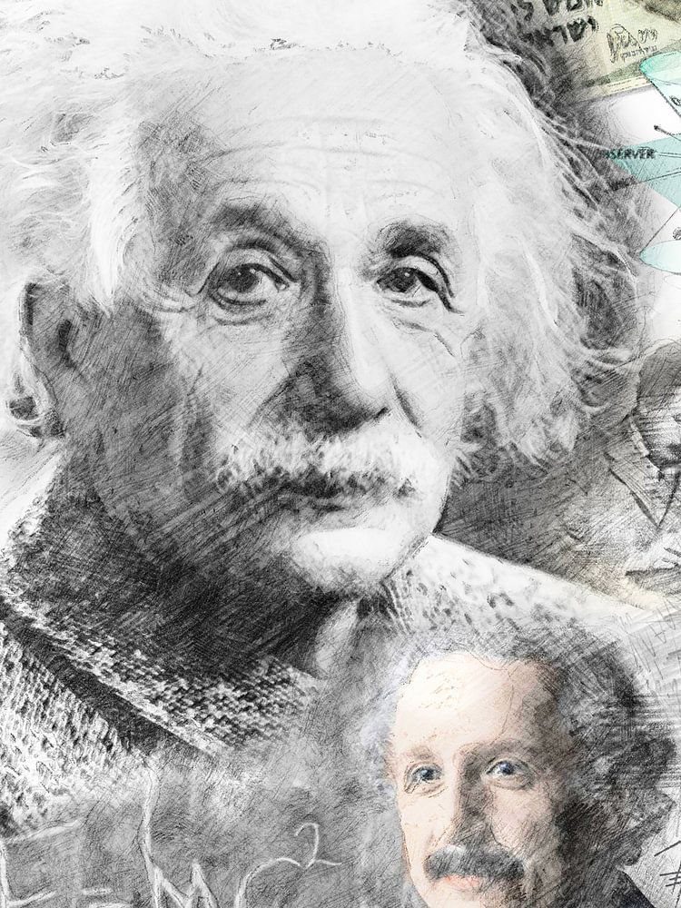 Portrait of the most important theoretical physicist in the history of science. His research on the structure of matter, space and time and on the nature of gravitation significantly changed the Newtonian world view that had previously prevailed. Drawn with pencil on paper.
