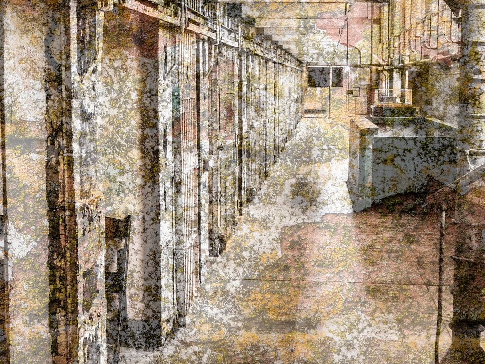 An atmosphere of days gone by, decay and loneliness. That is what this double-light image evokes in me. A cell block with thick bars. Cold, chilly, you can almost hear the tinkling of the guards' key bunches echoing.