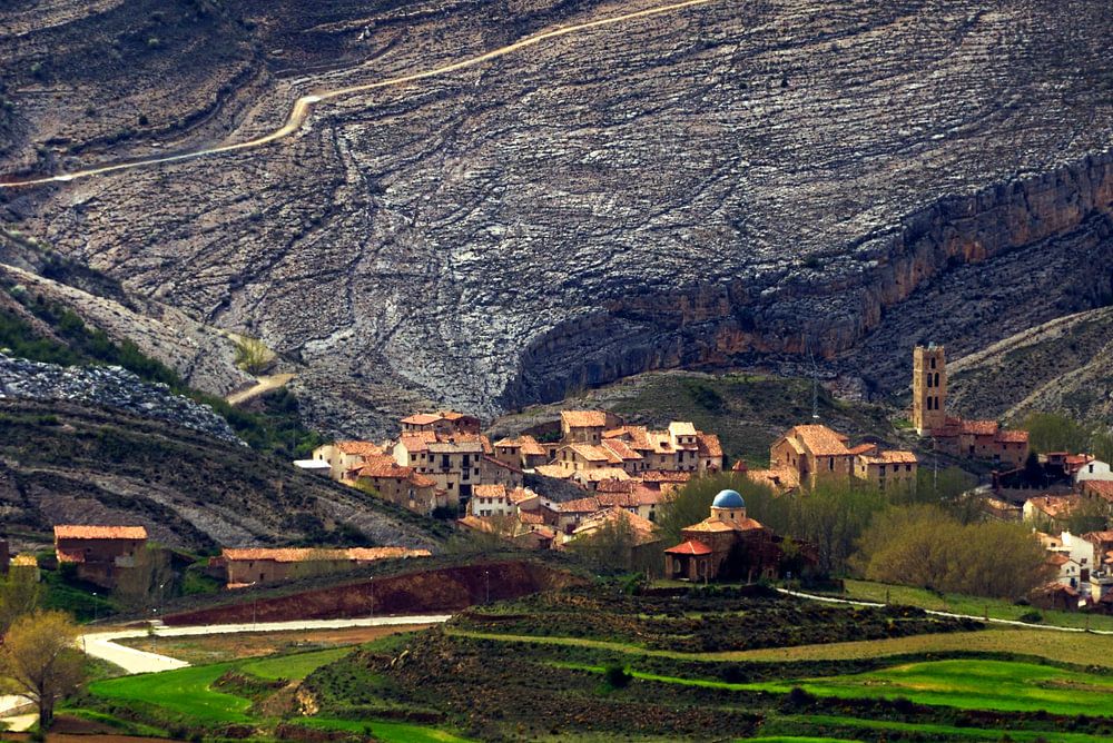 The Spanish village of Alcorisa in central Spain lies between two rockformations which gives it a unique kind of lining.