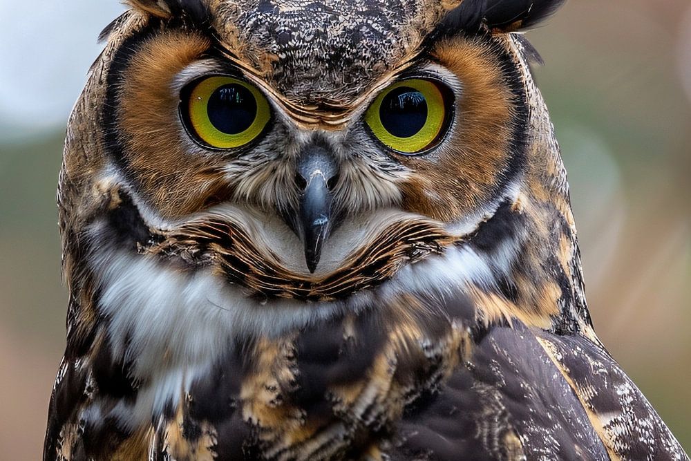 Stand still for a moment and let the intriguing gaze of this majestic owl carry you away. Its powerful eyes seem to penetrate your soul, while its soft feathers give an almost tangible texture to the image. Its pose, full of watchful elegance, shows us the essence of the natural world: as powerful as it is serene. Perfect for nature lovers or as a stylish addition to any room, this picture brings a piece of wild nature into your home. Be enchanted by this masterpiece and feel the connection with nature every day.
