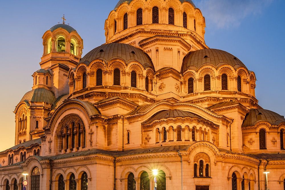 Alexander Nevsky Cathedral in Sofia, Bulgaria during a sunset