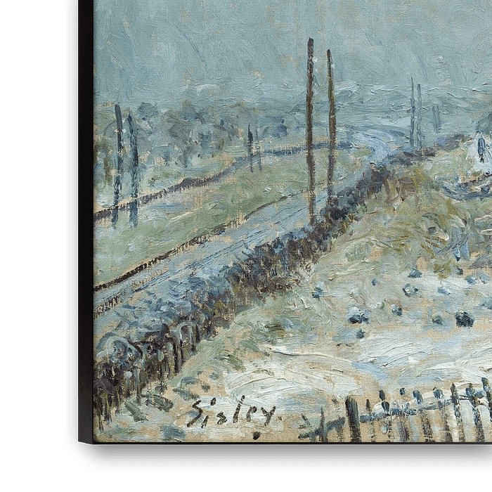 Buy Alfred Sisley,First snow at Veneux-Nadon as a reproduction on canvas, ArtFrame, poster and wallpaper, printed on demand in high quality.