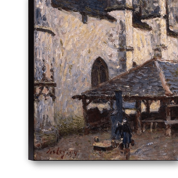 Buy Alfred Sisley,The church at Moret in the rain, 1894 as a reproduction on canvas, ArtFrame, poster and wallpaper, printed on demand in high quality.