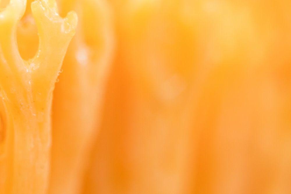 The Allee coral mushroom is a rare coral mushroom that grows near beech trees. It looks like it is on fire, both in colour and shape!