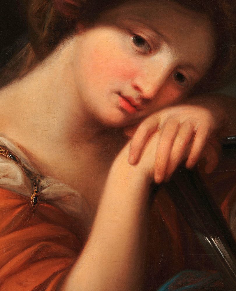 The painting portrays a young woman in classical costume, her cheek resting on her hands, which are crossed and rest, in turn, on an anchor, symbolizing Christian hope. It has been suggested that the model’s pretty and gently melancholy face might be that of the artist herself – a plausible but unconfirmed hypothesis.