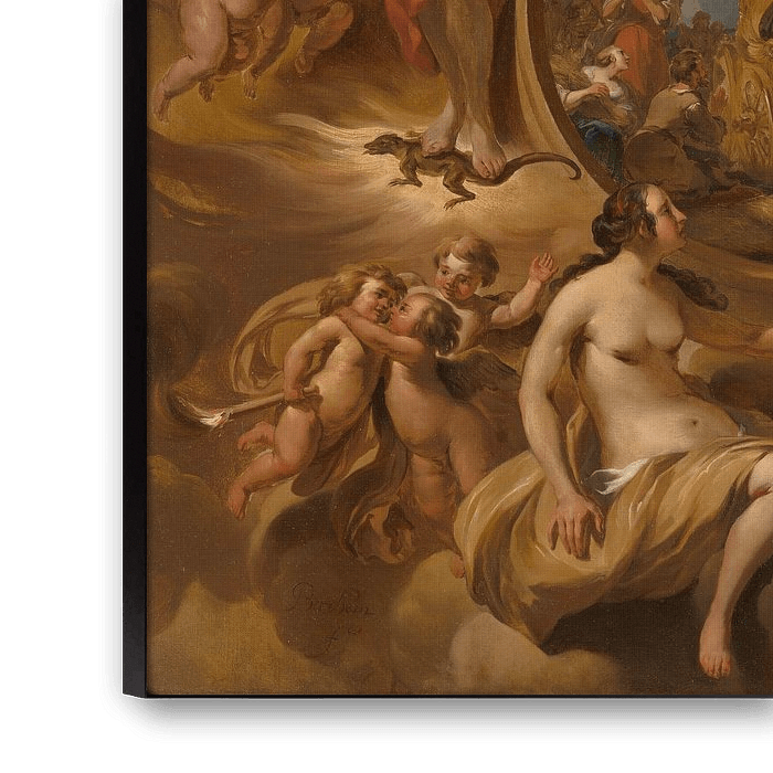 This painting is intended to be hung up high; over a door, for example. It was part of a series of four seasons that came from a house on the Herengracht canal in Amsterdam. This one represents summer. Ceres, the Roman goddess of grain that ripens in the summer, is standing in the centre.