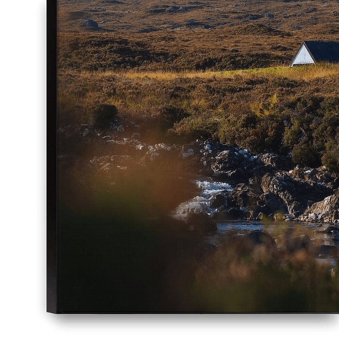 Buy this landscape artwork Allt Dearg Cottage in autumn colours by Richard Nell on canvas, ArtFrame, poster and wallpaper, printed on demand in high quality.