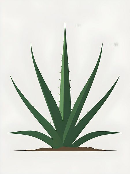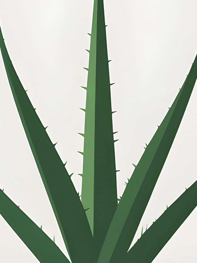 A minimalist modern illustration of an aloe vera succulent featuring sharp, pointed leaves with serrated edges radiating from a central base. The design uses layered shades of green from sage to deep forest, creating natural depth and dimension. Perfect for wellness brands, natural skincare products, herbal medicine materials, spa…