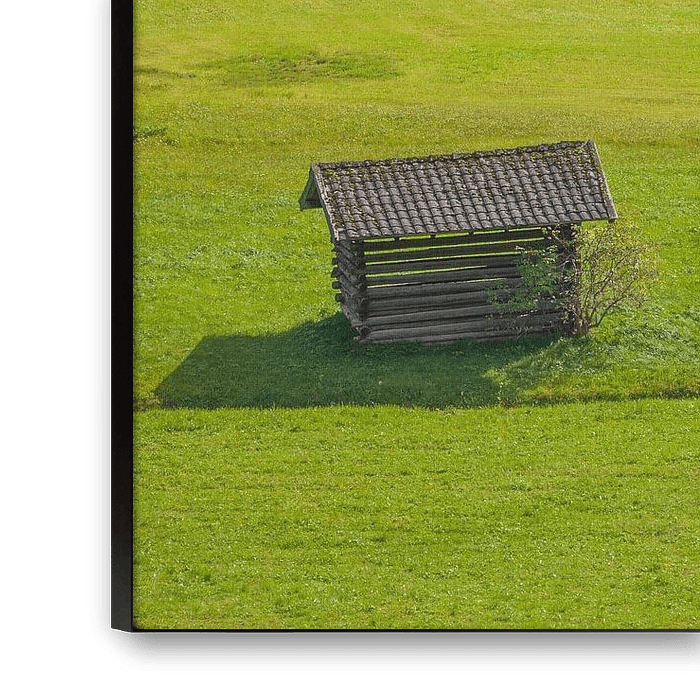 Buy the photo Alpine pasture with hay barn by Torsten Krüger on canvas, ArtFrame, poster and wallpaper, printed on demand in high quality.