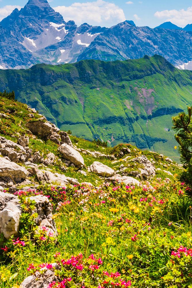 Alpine roses and the mountain Hochvogel by Walter G. Allgöwer