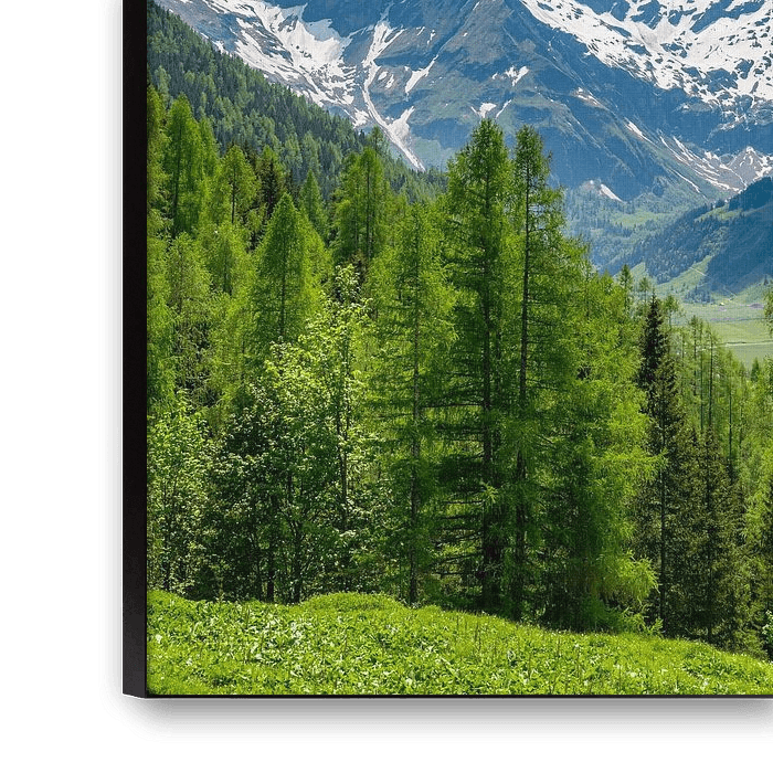 View in the Fuscher valley towards the Fuscherkarkopfs and Hohe Dock mountain and Fuscher Törl mountain pass in Salzburg Province, Austria during a beautiful springtime day. View over the various mountain peaks with fluffy clouds above.