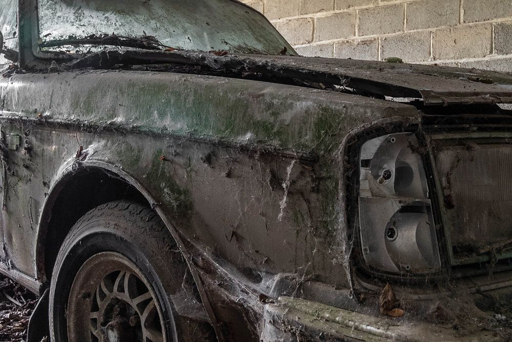 Unter einem heruntergekommenem Carport steht seit vielen Jahren dieser alte Volvo und vergammelt.